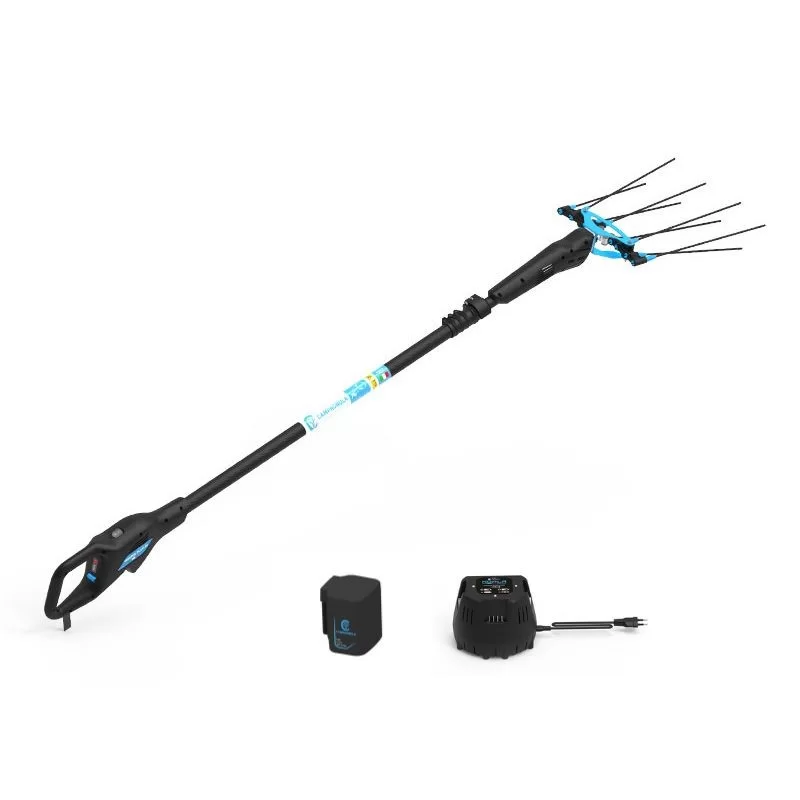 La conformazione e la larghezza di 295 mm del pettine vibrante esaltano il rendimento di raccolta e riducono notevolmente il consumo orario (ca. 5 Ah), mentre il movimento a bracci contrapposti quasi azzera le vibrazioni sull’asta. Questa versione ha l’asta telescopica che raggiunge i 3,15 m in alluminio. Il motore da 800 W sfrutta la tecnologia...