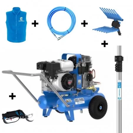Il motocompressore a spinta MC 545 viene fornito con motore a benzina HONDA GP 160 da 4,8 HP. Ha un telaio bilanciato con due serbatoi da 11 litri che riducono l’effetto della condensa. Tutti i motocompressori di Campagnola sono dotati di un dispositivo di autoregolazione pneumatica che accelera il motore solo nella fase di ricarica del serbatoio, fino al...