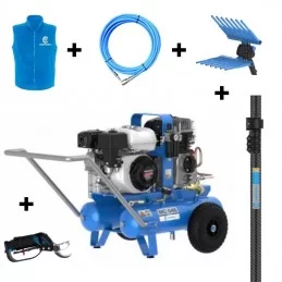 Il motocompressore a spinta MC 545 viene fornito con motore a benzina Honda Gp 160. Ha un telaio bilanciato con due serbatoi da 11 litri che riducono l’effetto della condensa. Tutti i motocompressori di Campagnola sono dotati di un dispositivo di autoregolazione pneumatica che accelera il motore solo nella fase di ricarica del serbatoio, fino al...