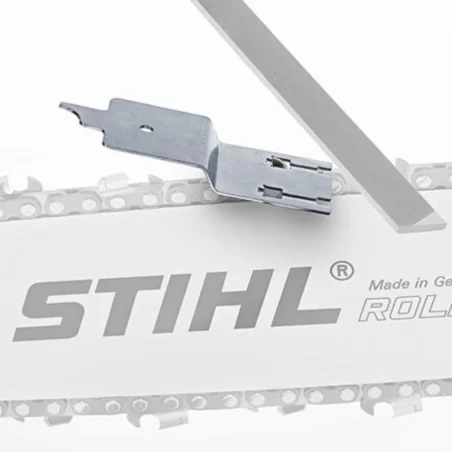Da utilizzare manualmente per il limitatore di profondità in acciaio temprato con rivestimento speciale. Due impostazioni: per legno duro e legno tenero. Con il gancio è possibile pulire sia la scanalatura della spranga che il foro dell'olio. 3 in 1