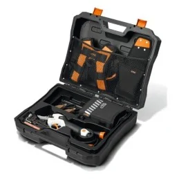 La STIHL ASA 130 è dotata di un sistema di trasporto con custodia, una custodia per batteria con cavo di collegamento, una guida per cavo ADVANCE X-Flex , una pietra per affilare, utensili per la manutenzione e una robusta custodia con inserto rimovibile e rete portaoggetti.