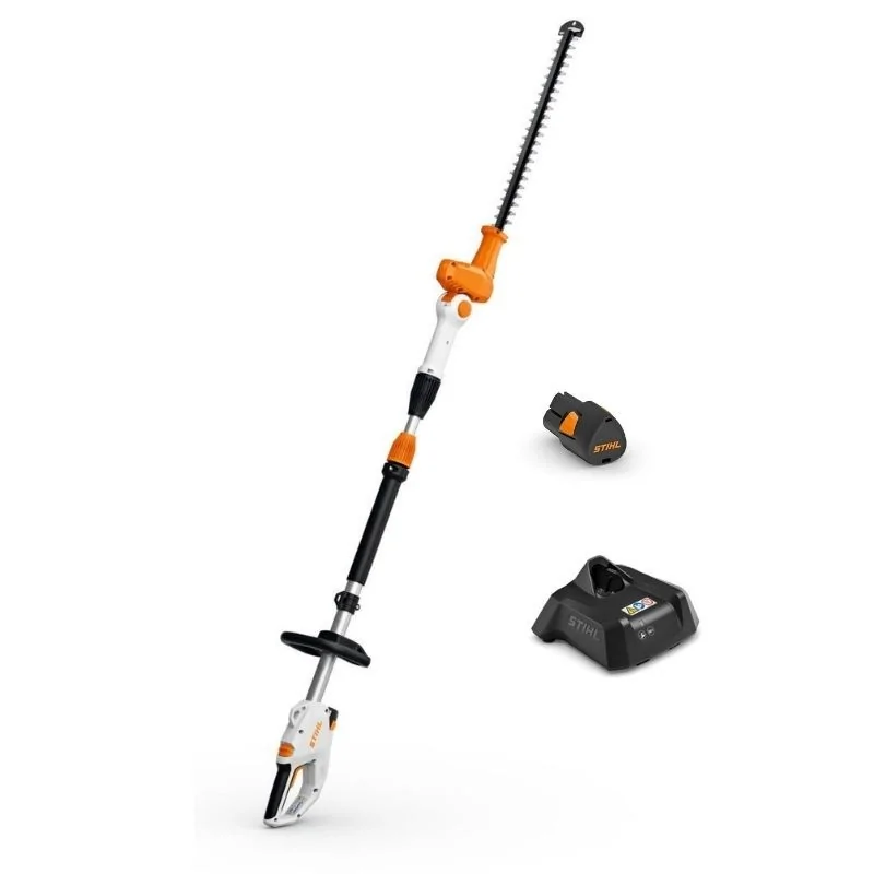 Il tagliasiepi a batteria compatto e leggero STIHL HLA 40, con asta telescopica e barra falciante regolabile, è ideale per il taglio di siepi alte, arbusti e cespugli, nonché di piante tappezzanti e piante ornamentali in ambito privato. Funziona con potenti batterie agli ioni di litio del sistema STIHL AS.
